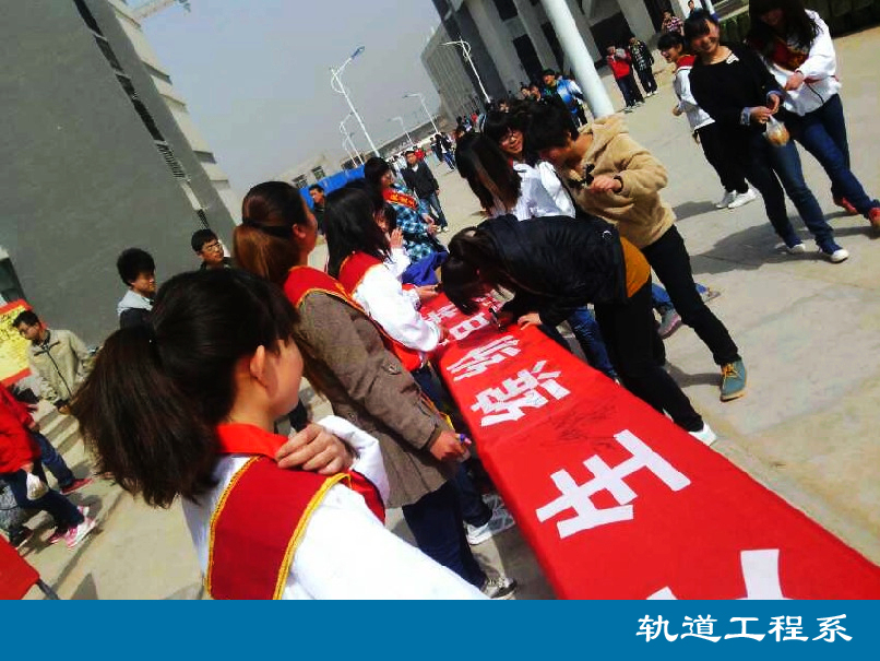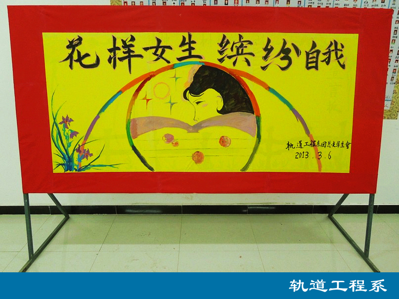 3月7日,是女生们的节日,漂亮的展板,心爱的礼物,健康的活动,加上一朵朵火红的玫瑰花,在轨道工程系员工会的精心安排下,中午12:30在高新校区公寓楼前举行“花样女生 缤纷自我”签名活动,在这次活动中,不仅体现了女生的激情与活力,也促进了彼此之间的感情,增强了女生们的凝聚力。