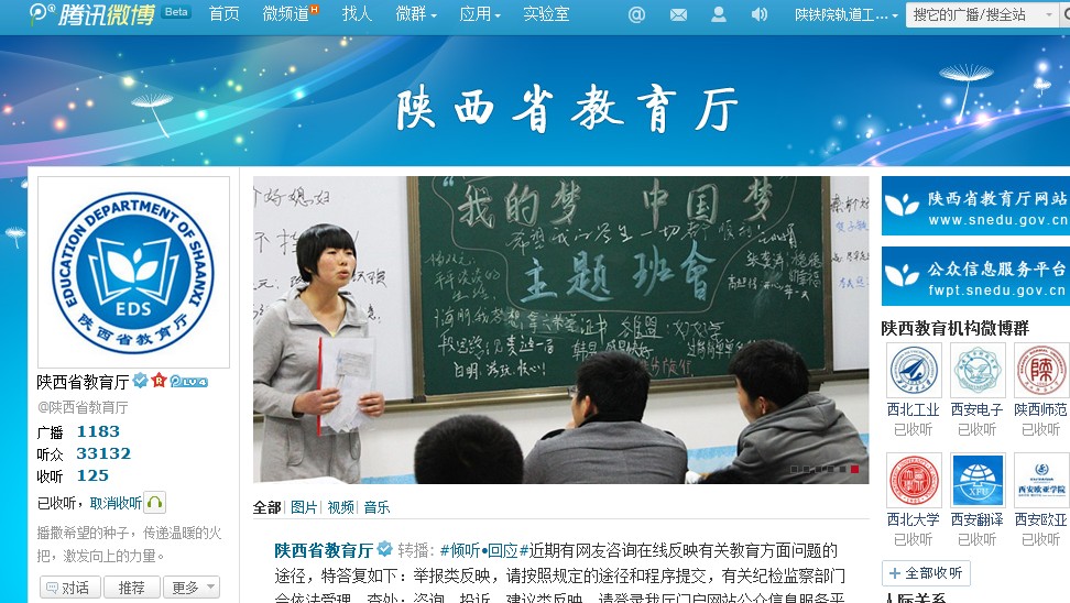 陕西省教育厅官方微博刊发公司中国梦系列活动