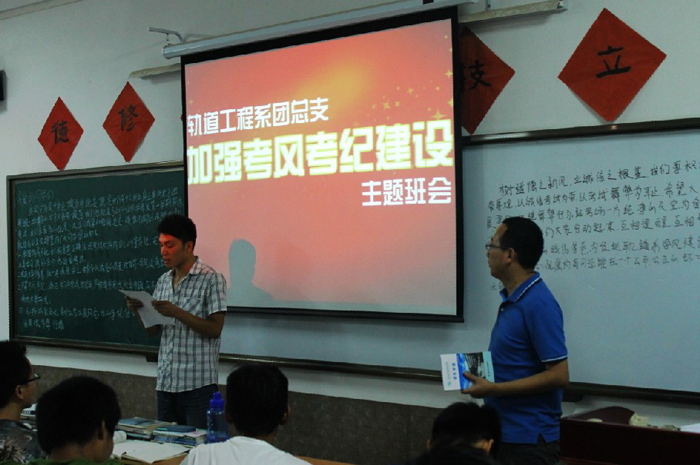 6月17日,轨道工程系各班举行“加强考风考纪建设”主题班会,倡议同学们从我做起、从现在做起,营造一个健康良好复习考试环境,预祝同学们在这次期末考试中取得优异的成绩!
