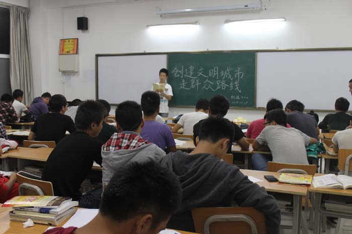 为了积极响应渭南市创办省级文明城市,10月9日晚自习,轨道工程系各班开展“创文明城市走群众路线”主题班会,认真学习了创建国家文明城市宣传标语、创建国家文明城市的基本知识,以及开展创建国家文明城市工作的重点内容。会上员工代表纷纷发言,同学们纷纷表示争做文明员工,为创建文明城市贡献力量。