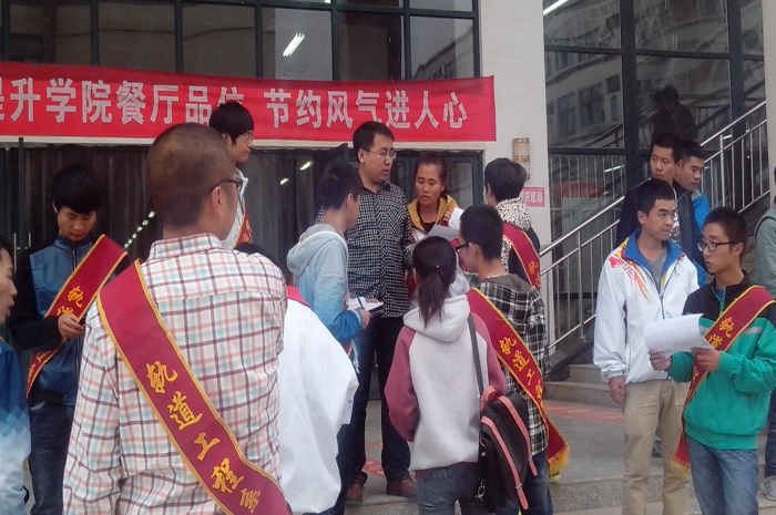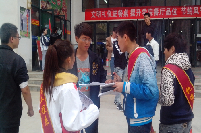 10月16日轨道3132班员工组织开展“创文明城市,建文明校园”活动,同学们利用中午休息时间在校园内提供自制垃圾箱为师生提供方便,利用就餐时间在餐厅门口发有关创文知识的宣传单,此次活动使广大师生进一步了解有关创文知识,为创建文明城市做出了积极贡献。(王小娟/文 杨光/图)