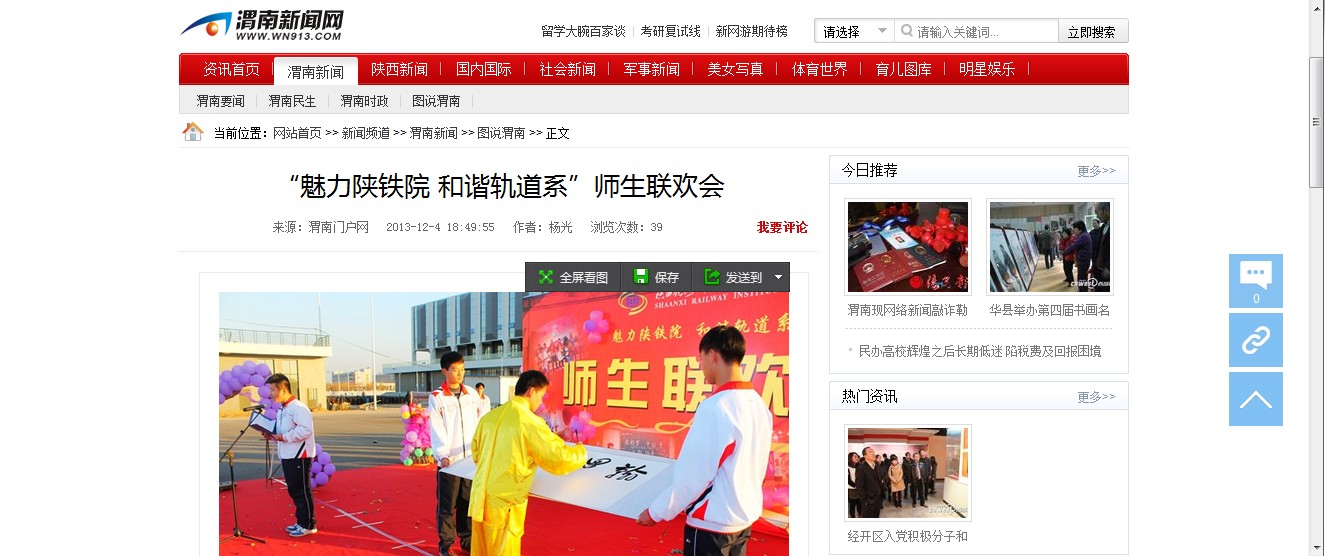 12月4日,渭南门户网报道轨道工程系“魅力陕铁院 和谐轨道系”师生联欢会。