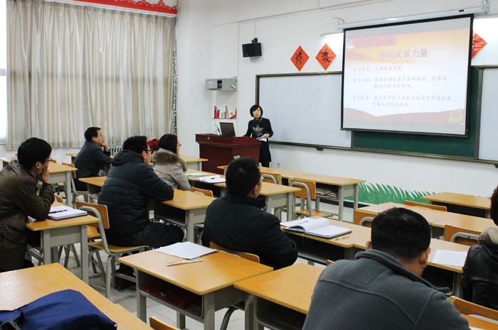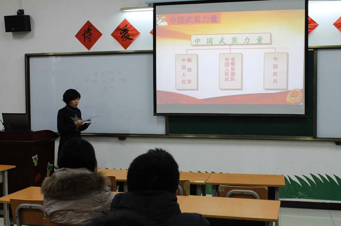 12月9日下午,轨道工程系任锐老师进行了一场军事理论课赛前演练,党总支书记祝和意、系主任毛红梅及系部老师对任老师的授课进行了点评,预祝任锐老师取得优异成绩。(杨光/文 辛勃/图)