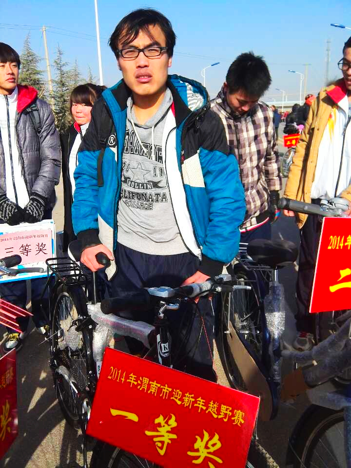 经过两个多小时的比赛,轨道工程系隧道3121班苗朋勃同学荣获男子组一等奖,奖品为一辆山地自行车,2014快马加鞭,祝贺!