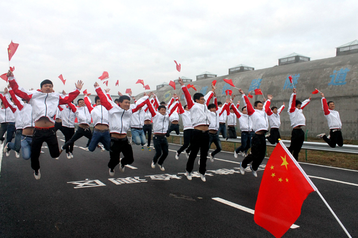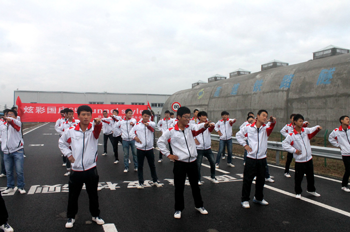 由2014级地下工程与隧道工程技术专业的65名新生组成的6排5列队形,萌哒哒跳起舞蹈《小苹果》,他们青春活力、激情澎湃,共同庆贺祖国母亲65年华诞!最后,党总支书记姜留涛与同学们一起和国旗合影留念,衷心祝愿伟大祖国繁荣昌盛。