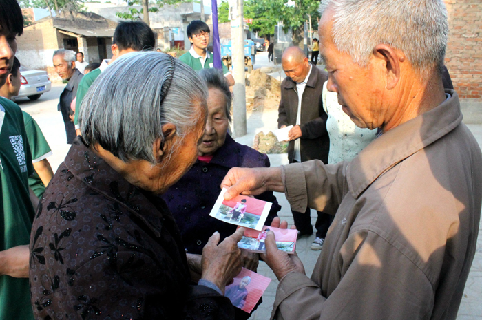 志愿者向张西村老人免费赠送照片