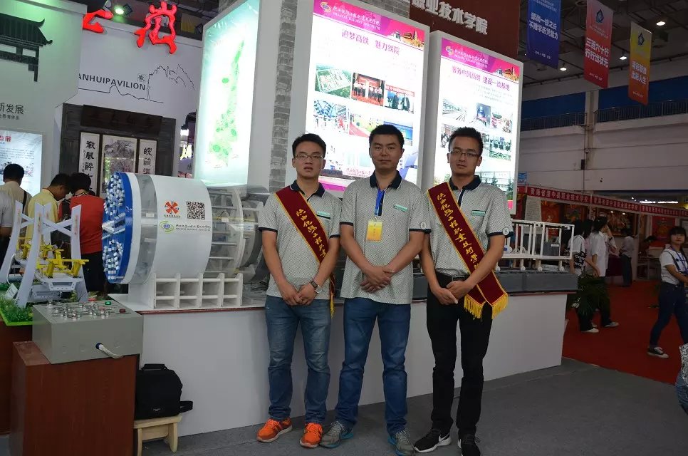 交流赛设置了综合成果、专项成果、表演项目成果等多种比赛,在展馆显要位置设置技术技能作品表演区和舞台表演区。而我系“开拓者”号盾构仿真模型以其独特新颖的外观设计、精确的控制技术吸引和征服全场观众,在最后的展示环节中一举拿下专项成果一等奖。