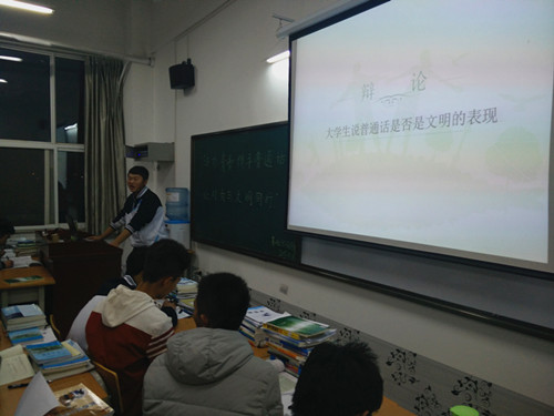 ——举行"携手普通话,与文明同行"特色团日活动。11月25日和12月3隧道3153班和基础3151班以“携手普通话,与文明同行”为主题召开团日活动。活动分三个环节。第一个环节是播放采访视频。大家通过这个环节了解到公司师生对讲普通话的看法和态度。第二个环节是绕口令大比拼,通过普通话和方言两种不同方式说绕口令的效果,使大家在笑声中意识到学习使用普通话的重要性。第三个环节是主题辩论,同学们围绕“老员工讲普通话是否是文明的表现”进行针锋相对、你来我往的争辩。活动在轻松娱乐的氛围下,通过寓教于乐的形式,使同学们意识到学好讲好普通话是老员工应尽的义务,体会到作为“情感纽带和沟通桥梁”的普通话的独特魅力。大家纷纷表示要学好国语,讲好普通话,积极推广普通话,使普通话成为校园语言。