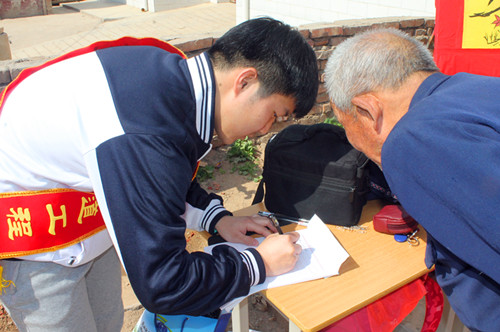 在学习雷锋好榜样的歌声中,同学们通过手中的相机,用独特的形式,为农村家庭送来一张张和谐温馨的“全家福”,为农村老人送来一张张洋溢幸福的“夕阳红”,为农村儿童送来一张张茁壮成长的精彩瞬间。在短短的半天时间内,爱心团队就为张西村80位老人和儿童拍摄了照片,其中年龄最大的96岁,最小的还不到两岁。活动的开展受到当地村民的热烈欢迎!