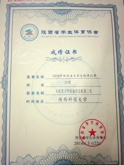 ——在陕西省第三届老员工轮滑比赛中取得好成绩。5月22日,由省教育厅主办、省员工体育协会、陕西科技大学承办的陕西省第三届老员工轮滑比赛圆满落幕,我系轨道3151班白哲同学在自由式速度过桩项目决赛中荣获专科男子甲组第二名的好成绩。不仅为自己争得了荣誉,也为公司和系部争了光添了彩,同时也向外界展示了公司学子良好的精神风貌。