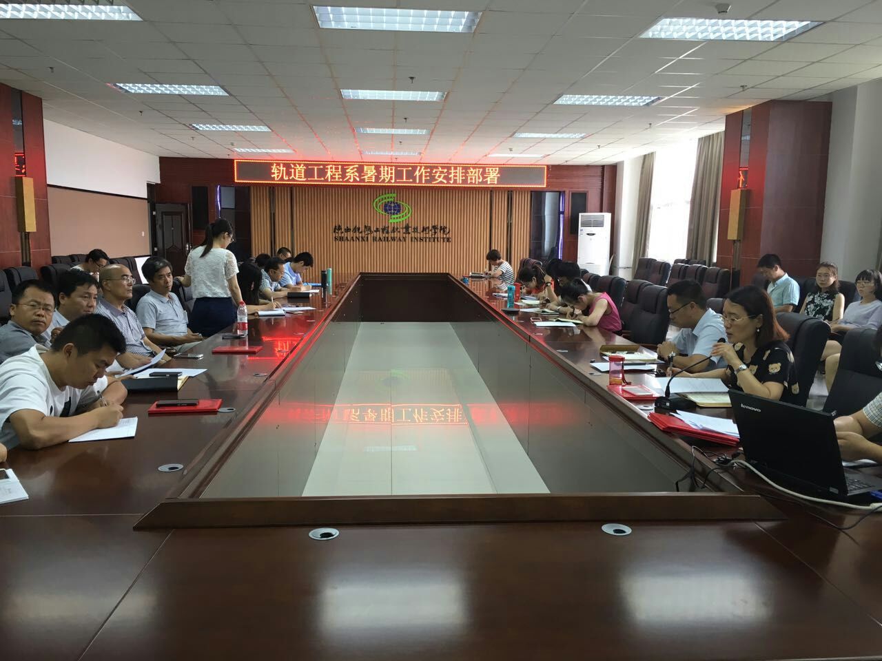 新进教师拜师大会后,毛红梅从地隧专业教学资源库建设的后期工作、城市轨道交通技术省级专宗建设、下学期教学任务准备等十个方面对暑期及加班期间的工作进行了详细布置。