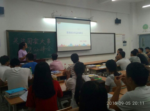 2016年9月4日,万众瞩目的20国集团(G20)领导人第十一次峰会中在杭州拉开帷幕,这是我国政治经济生活中的一件大事。9月5日下午和晚上,轨道系通过学习座谈会和召开主题班会等形式引导师生聚焦国家大事,参与社会热点问题的思考和讨论,增强责任感和使命感,培育爱国情怀。