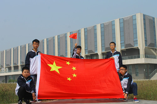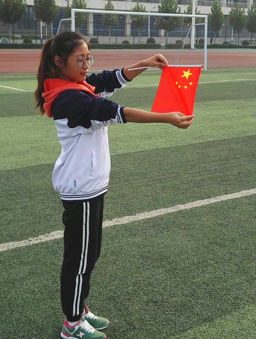 与国旗合影 传递正能量