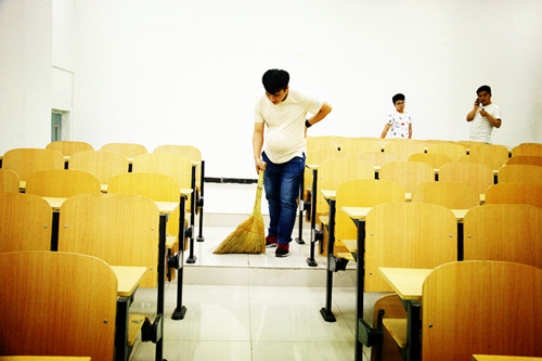 二十局三公司现代学徒制订单班班长王传奇体验孕妈洗衣服