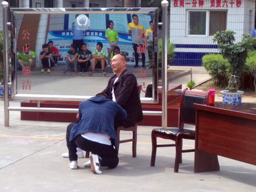 随后,大家在戒毒所干警的引领下,认真观看了禁毒戒毒宣传展板并参观了戒毒人员的宿舍,对戒毒所的管理模式有了进一步的了解。之后该院师生与所里戒毒人员一起进行文艺大联欢。戒毒人员为师生送上了歌伴舞《在希望的田野上》、小品《重头再来》、相声《戒毒》、情景剧《救赎》等四个精心编排的节目,陕铁院师生也为他们献上了快板《绕口令》、《禁毒歌》,独唱《等待》《红梅赞》等精心准备的节目。现场气氛融洽,笑声欢语不断。