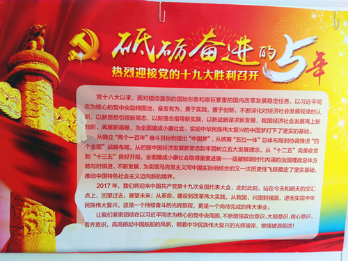 一幅幅真实生动的宣传图片吸引了众多师生驻足观看,“很受教育,很受鼓舞”是大家观看后的真实感受。大家一致认为,十八大以来的五年是共产党人敢为人先,砥砺奋进的五年,是不忘初心,继续前行的五年,相信全国各族人民在中国共产党的领导下,撸起袖子加油干,“两个一百年”的奋斗目标一定能够顺利实现!
