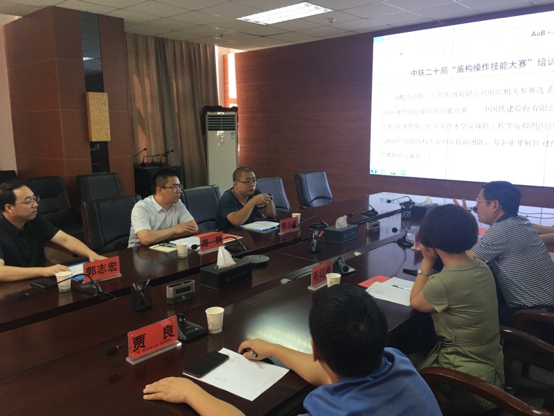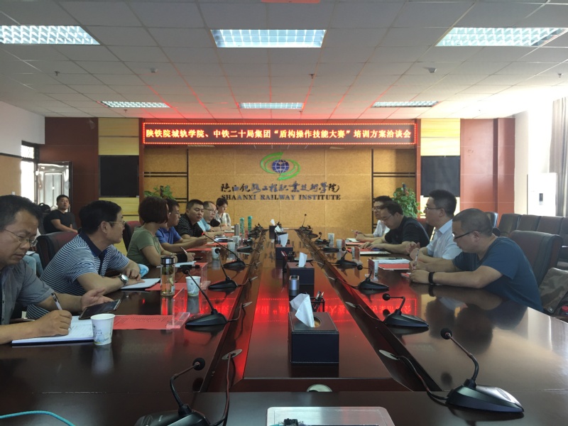 9月6日下午,城轨公司与中铁二十局集团在高新校区行政楼南楼3楼会议室举行“盾构操作技能大赛”培训方案洽谈会议。中铁二十局集团有限公司人力资源部周麟、郭志宏,盾构创新工作室工程师李正超、岳琳辉,陕西省技能大师曾宇翔,公司经理毛红梅等公司领导、盾构教研室骨干教师参加会议。会议由毛红梅主持。