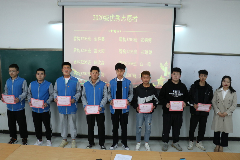 本次大会分为三个阶段,第一阶段由学工办主任蒋萌宣读本次获奖优秀志愿者名单,蒋老师肯定了公司杨艺凡等53位学子积极加入村、县、社区等疫情防控服务队的志愿服务工作,夸赞他们配合村、县、区委会等基层干部,主动担当,站岗执勤,疫情筛查、预约登记、上门宣传等服务工作,不惧危险,用自己所学知识,在不平凡的岗位上传递抗疫正能量,为打赢疫情防控阻击战贡献强劲青春力量。