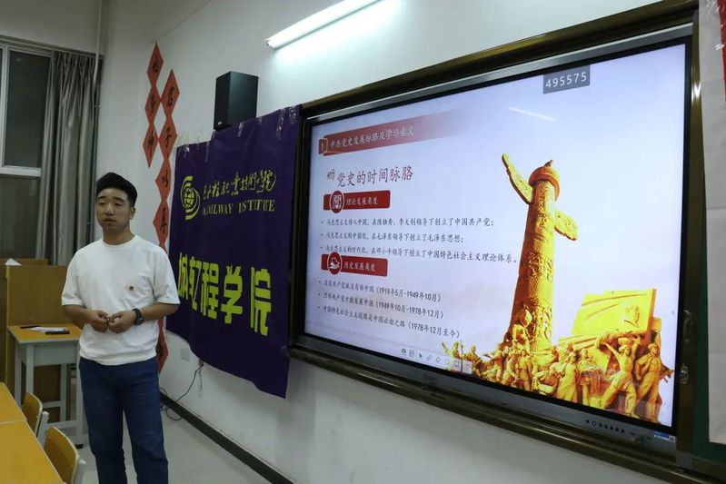 最后,韩俨为同学们生动的讲了一节团课,向同学们讲解党与团的关系以及党的百年发展历程,以及我们应当如何去做一名合格的共青团员。