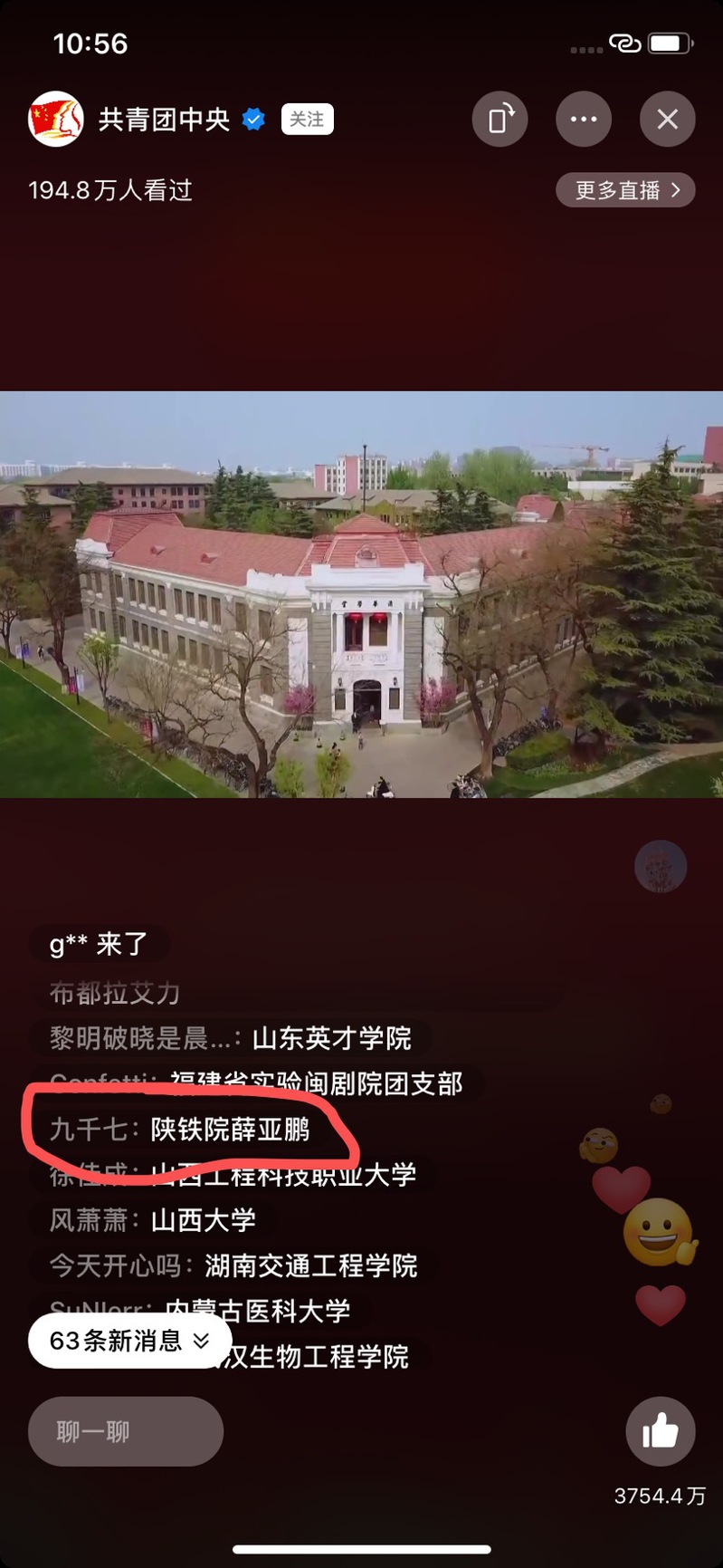 5月4日上午,伟德体育全体员工观看共青团中央直播的“学党史、强信念、跟党走”主题云团课。学子们在家里、在田间、在宿舍、在校园、在旅行途中,依然不忘今天的主题云团课,积极互动,在直播中总能看到陕铁院的学子的名字。生逢盛世,肩负责任,这五四青年节,公司学子一起学子“学党史、强信念、跟党走”的精神理念,立大志、明大德,成大才、担大任。公司积极倡导城轨学子在校园锤炼品德,勇于创新;在工作岗位实学实干,吃苦奉献,永远跟党走。(孙喜文)