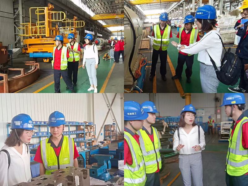 在巡查中,张媛、孙喜文与现场师傅进行交流,讨论公司土压平衡盾构仿真机的进度,了解到第一批5台仿真机已经发货到场,后续的仿真机已在加速赶制中,并讨论盾构生产车间对员工的专业要求,包括现场应用到的液压专业技术知识、电气及PLC技术知识,老师们深有感触,将意见及建议反馈,对接企业标准,提升专业课程教学问题,师傅表示喜欢咱们陕铁院同学吃苦耐劳、艰苦奋斗的精神,期待公司输送更多优秀学子!