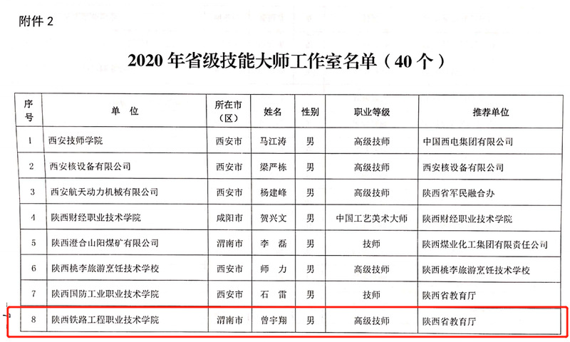 根据人力资源和社会保障部、财政部《关于深入推进国家高技能人才振兴计划的通知》,省财政厅、省人力资源社会保障厅《关于印发陕西省就业补助资金管理办法的通知》和陕西省人力 资源和社会保障厅、陕西省财政厅《关于申报2020年高技能人才建设项目的通知》,经推荐评审,伟德体育曾宇翔大师工作室成功立项省级项目,今后将严格按照申报方案保质保量完成建设项目,充分发挥大师引领作用,持续推进公司各项工作再上新台阶。(陈岑岳)