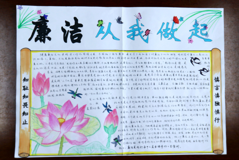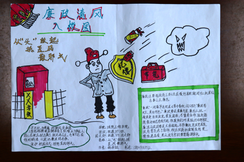 本次手抄报喜迎建党一百年廉政清风入校园活动同时通过“易班”首页提交作品征集信息,线上线下同时进行,主要加强员工对党廉政的认知,将党的廉政之风带入校园生活,使员工充分养成廉洁心理。廉政是一个政党的代表,是一个民族的代表,是一个社会与时代的代表,充分普及廉政之风,建廉政之道,促进国家建设有用之才,无论历史如何发展,时代如何变迁,敬廉崇洁永远是时代的呼唤,勤政廉洁永远是时代的主旋律。