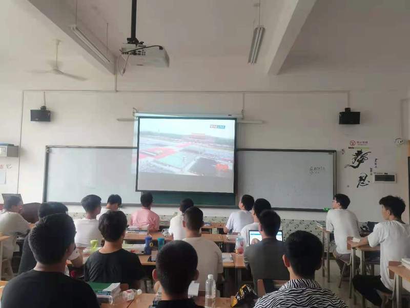 8时许,北京天安门广场,组成“100”、“71”字样的飞机掠过长空,100响礼炮,声声震动寰宇,国旗护卫队,步步坚定有力。致敬党的百年历程,全场唱响中华人民共和国国歌,激动人心的画面,让集中收看的同学们热血沸腾。