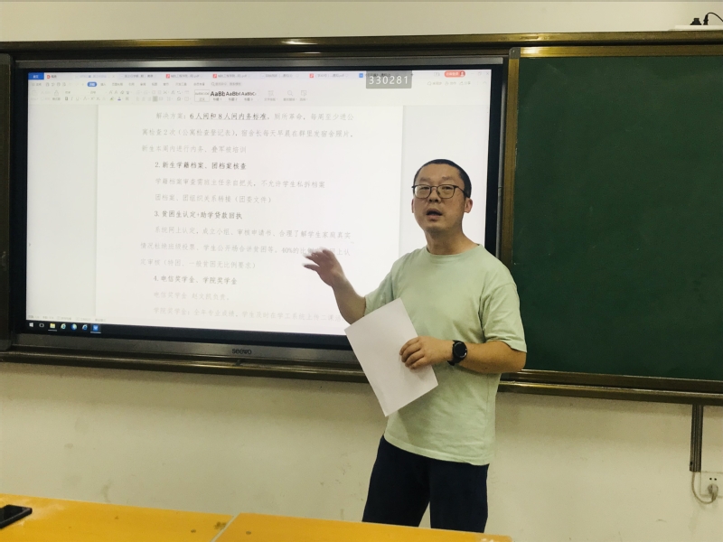 会中,蒋萌对宿舍内务管理、新生学籍档案、贫困生认定、奖学金申报、技能大赛、暑期实践报告等工作做了详细介绍,并安排部署了新生具体工作。