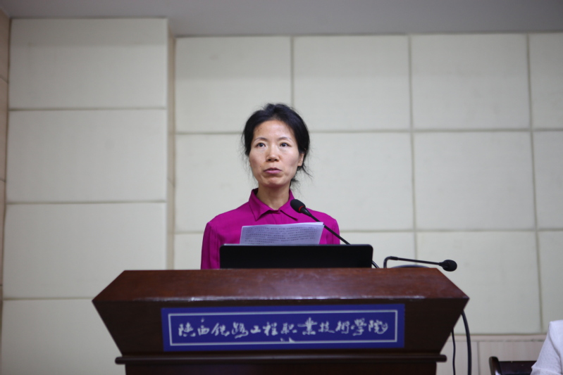 辅导员王静作为优秀指导老师上台发言,分享了在渭南市大荔县安仁镇龙门村开展以“青春助力乡村文化振兴”为主题的暑期社会实践活动“一点思考、两点体会”。她表示,员工们在凌晨1点背诵第二天直播解说词、正午骄阳在田间挥汗如雨、凌晨3点合上电脑完成课件制作、为村委会委员讲解“党史国情”的志愿服务态度以及“吃苦奉献 拼搏争先”的铁院精神得到了村民们的充分肯定。