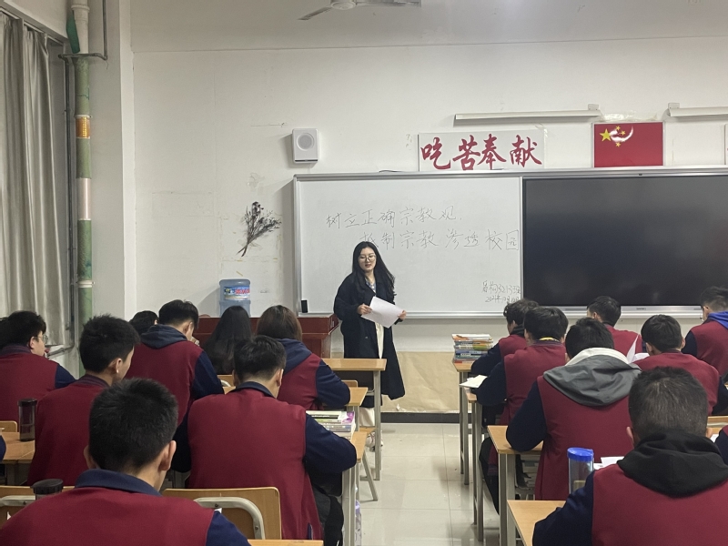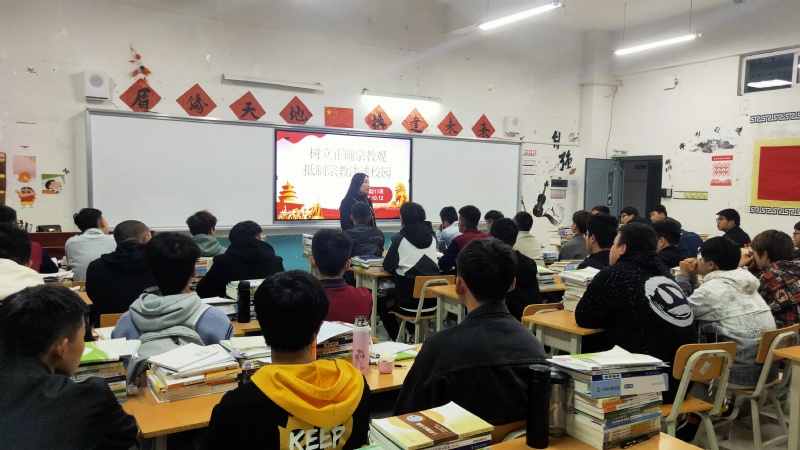 各班主任介绍了我国宗教的现状、宗教的社会影响、目前宗教政策、宗教与邪教的区别等内容。班主任特别强调邪教不是宗教,邪教是冒用宗教、气功或者其他名义建立,神化首要分子,利用制造、散布歪理邪说等手段蛊惑他人,发展、控制成员,骗钱敛财,危害社会的非法组织。宗教的本质是反人类、反科学、反社会的,任何公民发现邪教及其成员都可直接报警。