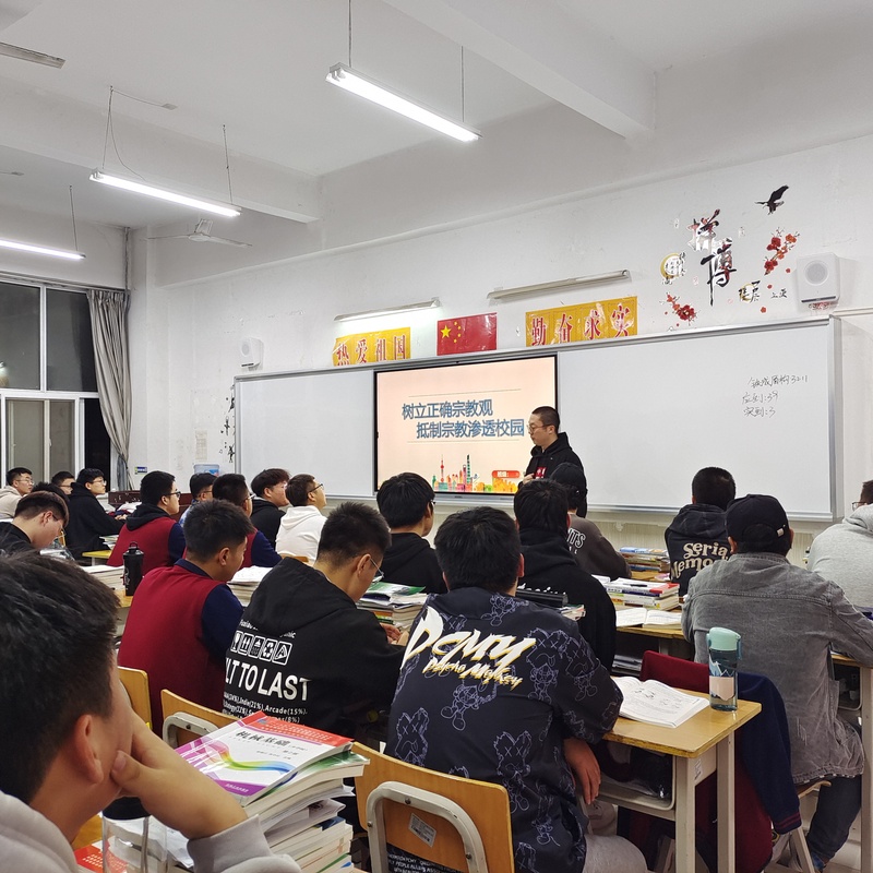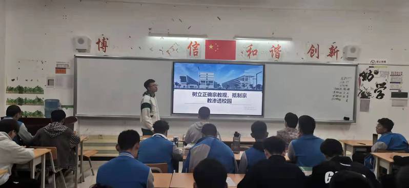 为进一步加深老员工对宗教的认知,引导老员工树立正确的宗教观与无神论思想,强化国家意识形态安全教育。10月12日晚,公司组织各班在教室开展“树立正确宗教观 抵制宗教渗透校园”主题班会。