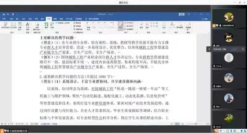 10月17日上午,伟德体育联合桥建公司召开关于城轨专业群教学成果奖申报材料研讨推进线上会议,伟德体育经理毛红梅和副经理贾良参会。会上,各材料撰写负责人先对各自撰写部分进行阐述说明,随后集体展开研讨,并提出修改意见,其中,毛经理和贾经理也对各部分撰写的材料提出自己的看法和建议,为各负责人理清材料撰写思路,凝聚材料撰写内涵。本次会议再次为教学成果的申报明确方向,全体材料撰写人员也为成果奖的顺利申报做最后冲刺。(王晗)