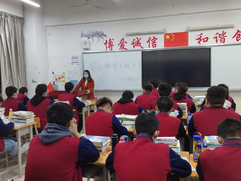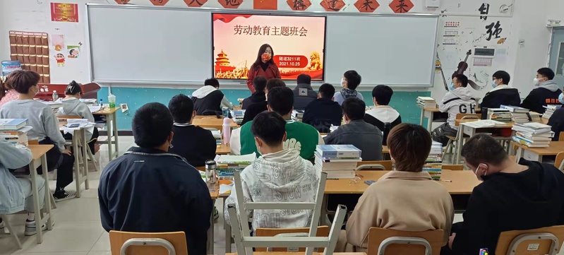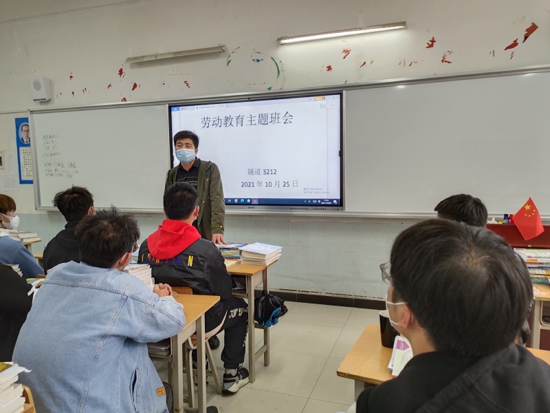 期间,辅导员、班主任提出“劳动”的意义所在,引导同学们深刻理解劳动教育,用实际行动践行劳动教育理念,积极参加校外内公益劳动、班级组织的集体劳动等;同时,班主任分享自身的劳动体验和周围的劳动模范,鼓励同学们积极参加劳动教育活动。同学们认真聆听,气氛良好,班主任对教室卫生打扫、宿舍卫生内务、公益劳动等事项做了具体部署,提出组织劳动活动要求。