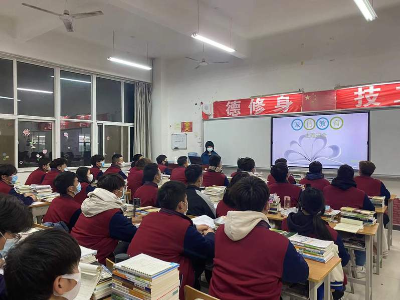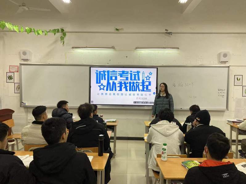 此次班会旨在鼓励同学们树立诚信的良好品质,坚持“诚信为本”,保持严谨求实的学习态度,杜绝一切考试作弊行为,维护良好的考试纪律,诚信应考。(孙喜文/文)