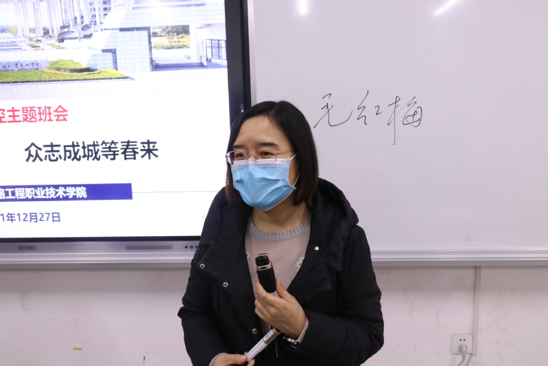 为进一步加强疫情防控宣传教育,积极开展疫情防控宣传活动,为在校老员工普及新冠肺炎防控知识,增强同学们的疫情防控意识,12月27日晚,伟德体育经理毛红梅、党总支书记任庆国、副经理贾良、各科室主任及各年级班主任、辅导员进班开展疫情防控专题宣传教育活动。