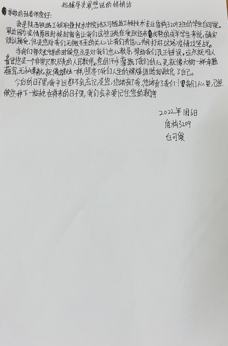为认真落实公司关于做好疫情防控期间在校员工心理状态,减轻同学们的压力,用于表达自己心中的情感。1月7日下午,公司组织开展“给老师最想说的悄悄话”主题活动,在校生志愿参加。