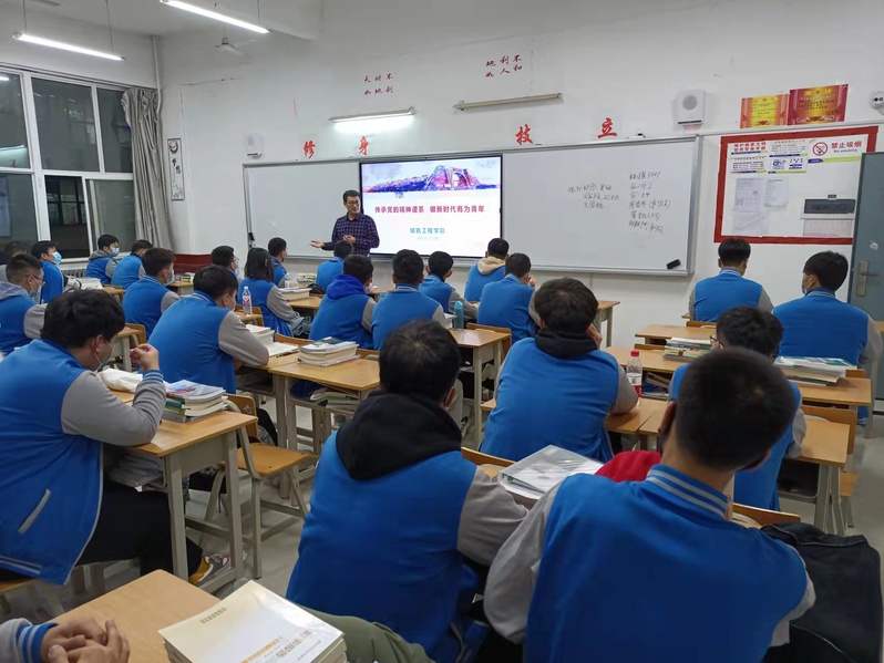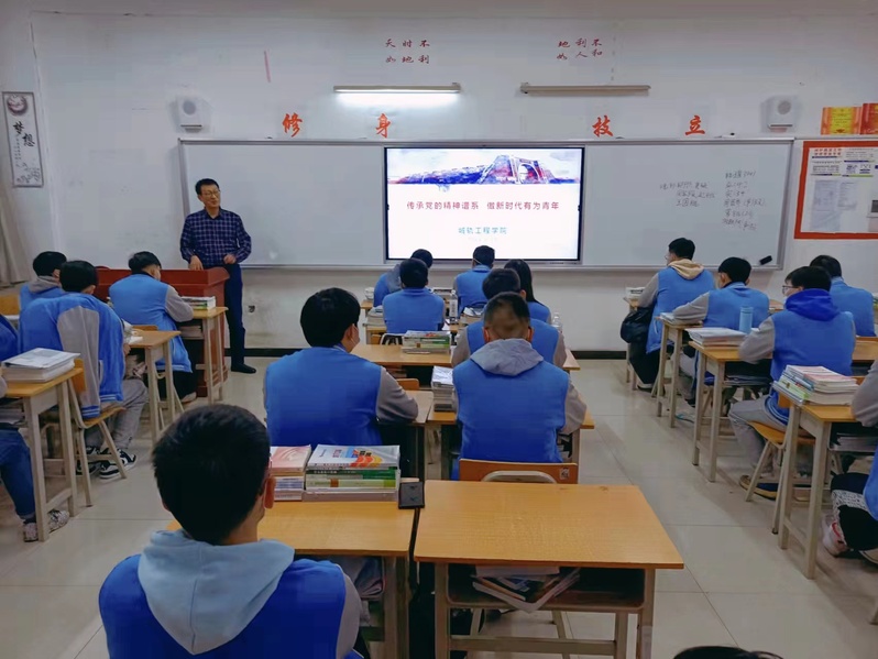 2月28日晚,公司副董事长蒋平江、伟德体育经理毛红梅、党总支书记任庆国、副经理贾良、综合办公室主任郭军、学工办主任蒋萌等领导干部,各年级辅导员、班主任以“传承党的精神谱系 做新时代有为青年”主题进班宣讲。本次宣讲围绕“冬奥精神”、“西迁精神”、“抗疫精神”、“抗美援朝精神”、“脱贫攻坚精神”及“陕铁院精神”等内容,对同学们进行了爱国主义思想教育。