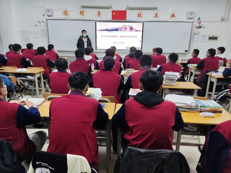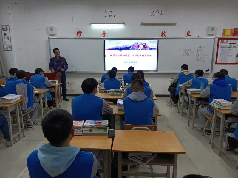 2月28日晚,公司副董事长蒋平江、伟德体育经理毛红梅、党总支书记任庆国、副经理贾良、综合办公室主任郭军、学工办主任蒋萌等领导干部,各年级辅导员、班主任以“传承党的精神谱系 做新时代有为青年”主题进班宣讲。本次宣讲围绕“冬奥精神”、“西迁精神”、“抗疫精神”、“抗美援朝精神”、“脱贫攻坚精神”及“陕铁院精神”等内容,对同学们进行了爱国主义思想教育。