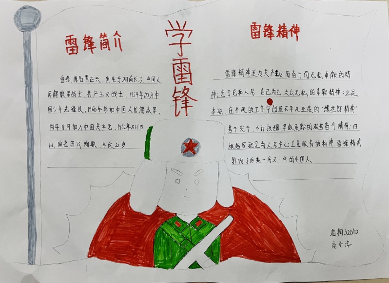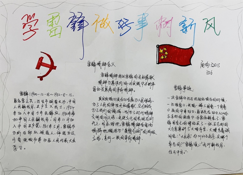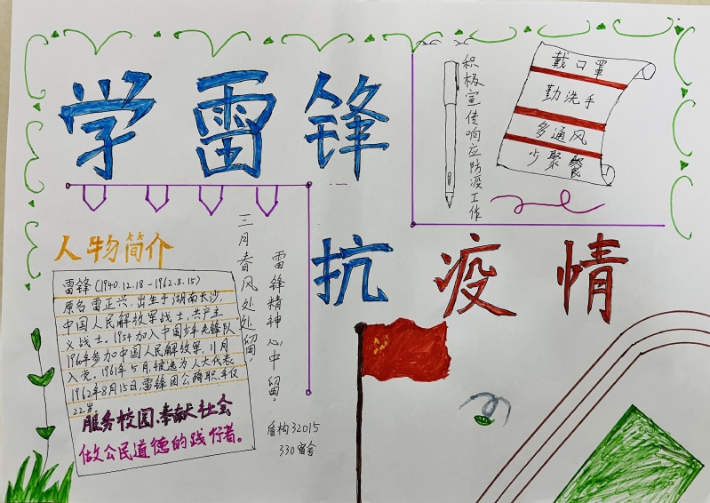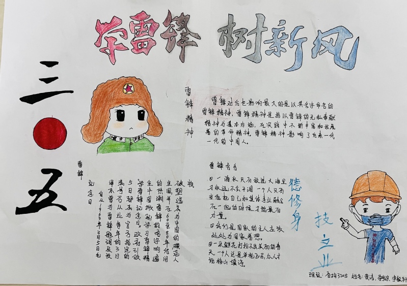 本次手抄报以“学雷锋”为主题,通过绘画、摘录等各种形式,描绘雷锋肖像、介绍雷锋事迹、摘录《雷锋日记》、展现身边的雷锋等,从各个方面宣扬雷锋精神,把对雷锋的崇敬和怀念之情深深融入到手抄报创作之中,追述雷锋同志的光辉事迹。参赛作品版面设计新颖、内容丰富、图文并茂、形式风格各异,体现了员工活跃的思维和创新的动手能力。通过本次活动,同学们深刻地学习到雷锋精神的内涵,体会雷锋精神的意义,用实际行动践行雷锋精神,为建设美丽校园奉献一份爱心。(孙喜文/文)