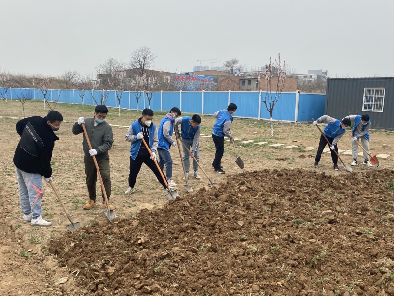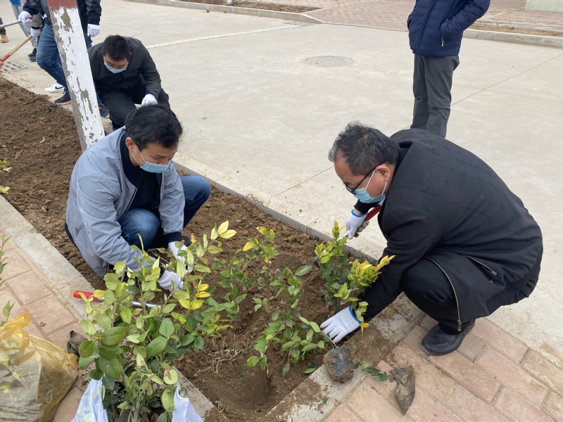 在公司领导的带领下,各位老师拿起铁锹,积极发挥教师模范带头作用,兴致高涨地投入到植树活动中。在植树现场,领导们身先士卒、干劲十足,起到了表率作用。同学们也受到鼓舞,有的扶苗,有的培土,各个环节衔接有序,配合默契,充分发扬了团结、互助、友爱的精神。通过一下午的努力,老师和同学们将西区天桥下大片的泥土翻新了一遍。