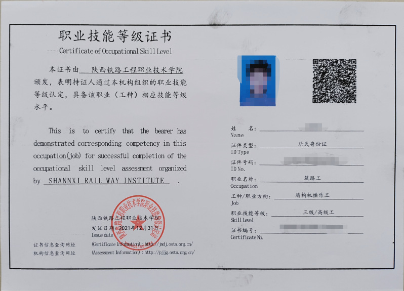 盾构机操作工职业技能等级证书