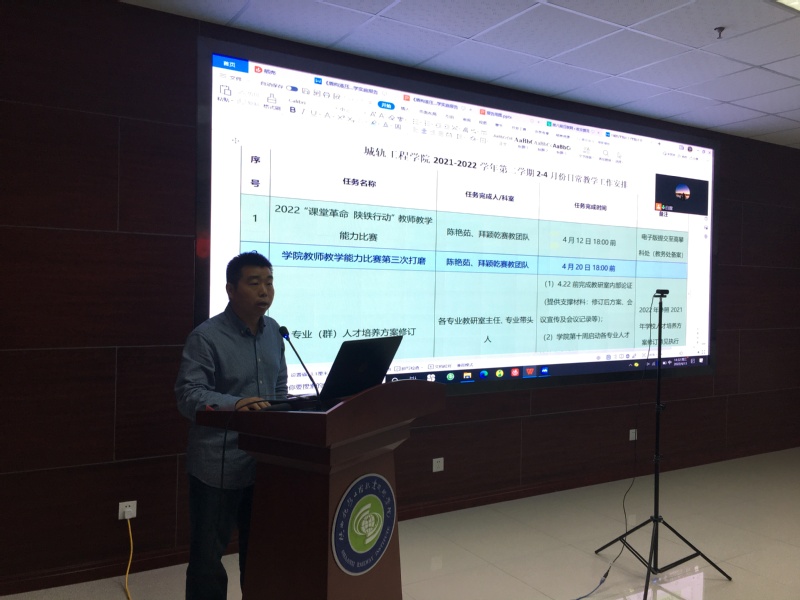 会上,综合办主任郭军解读了近期公司防疫相关政策及教职工防疫登记管理办法,重申离渭报备及请假流程;学工办主任蒋萌介绍了截止目前公司第八届“互联网+”大赛报名情况,对后期初赛工作作了安排部署,并号召全体教职员工积极参与员工指导、项目孵化及成果打磨,争取成绩突破;实践教学科科长高攀科对近期有关教师教学能力比赛、人才培养方案修订等教学工作作了说明。