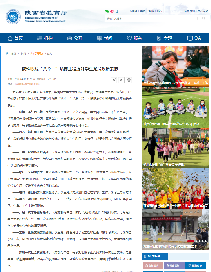 近日,陕西省教育厅报道了公司党总支开展员工党员“八个一”培养工程,不断提高员工党员理论水平和综合素质相关举措。
