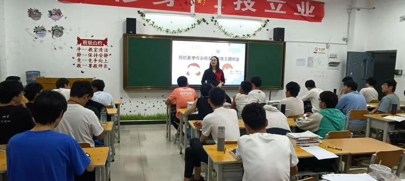 班会上,班主任主对细菌性痢疾、水痘、伤寒等几大常见传染病的传播途径、发病症状以及预防措施等进行了详细的描述,图文并茂,以生动的事例提醒员工要每天开窗通风,保持室内空气流通;要求同学们讲究个人卫生,勤洗手,用流动水彻底清洗干净;若班级一旦发现传染病病人或疑似传染病病人,立即上报送往医院检查。