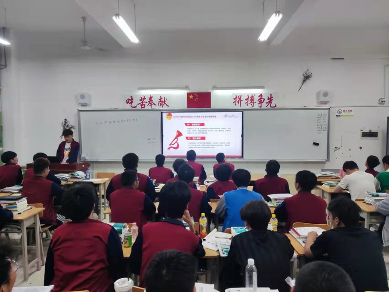 首先,带领同学们深入学习习近平总书记在庆祝中国共产主义青年团成立100周年大会上的重要讲话精神,深刻领会了习近平总书记重要讲话的深刻内涵以及对当代青年殷切的关怀嘱托。提到习近平总书记的重要讲话,全面回顾了100年来共青团坚定不移听党话、跟党走的青春历程,充分肯定了共青团在党的领导下、团结带领一代代团员青年为实现中华民族伟大复兴中国梦所作出的重要贡献,阐释了共青团和青年工作深刻的历史经验,为新时代党的青年工作和中国青年面向未来、再立新功指明了前进方向、提供了根本遵循。