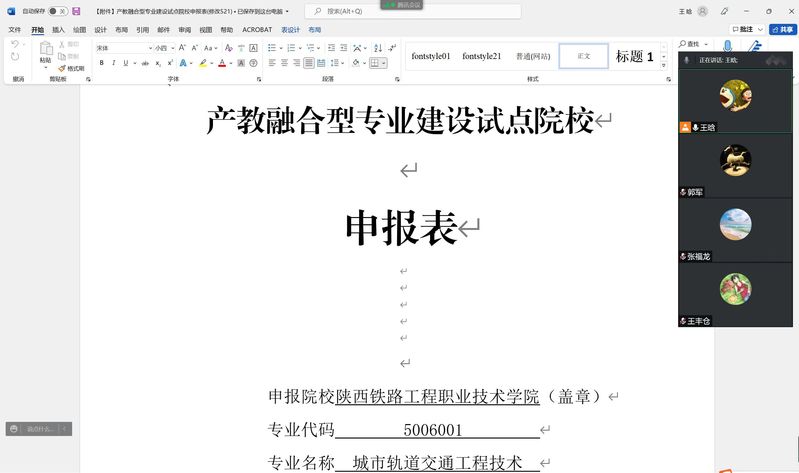 5月21日晚,城轨教研室组织王丰仓、张福龙等骨干教师召开线上研讨会,对即将提交的产教融合型专业建设试点申报材料进行打磨,会议由城轨教研室主任王晗主持。会上,特邀公司办公室主任郭军老师进行指导,各撰写人先对各自负责撰写部分进行了逐一汇报,随即郭军及各位与会老师发表看法,提出具体修改意见。本次线上研讨会的召开将大大有利于申报材料整体水平的提高,也为后期城轨专业产教融合型专业试点的成功申报打下基础。(王晗)