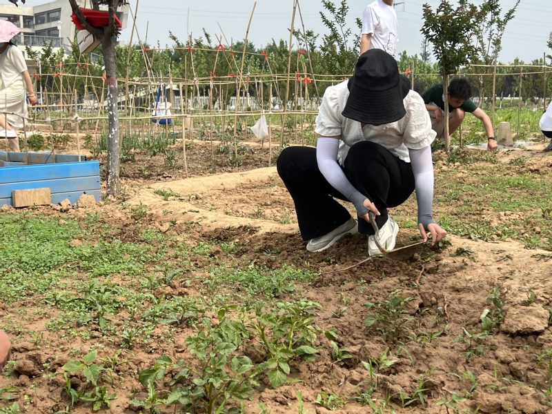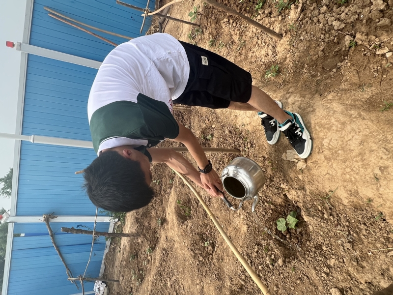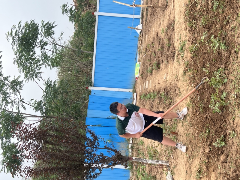 活动伊始,辛娜为员工进行动员,讲明了资助育人工作的核心就在于“扶困、扶志、扶智”,在资助育人工作中融入劳动教育,对员工的德智体美等方面都要重要的支撑意义。鼓励员工感受劳动带来的获得感与成就感,摒弃懒惰、等靠要等错误思想,培养责任意识与奉献精神。随后,全体人员顶着炎炎烈日,投入到现场劳动实践当中,挖菜地、撒菜种、浇水施肥,忙并快乐着。