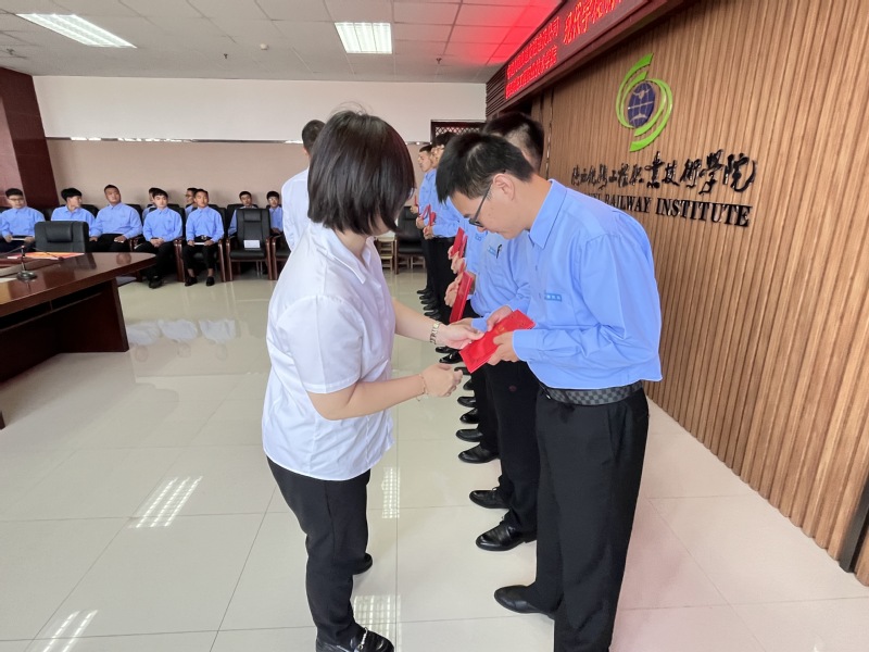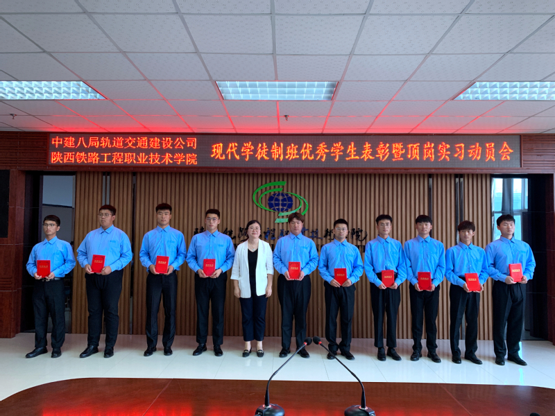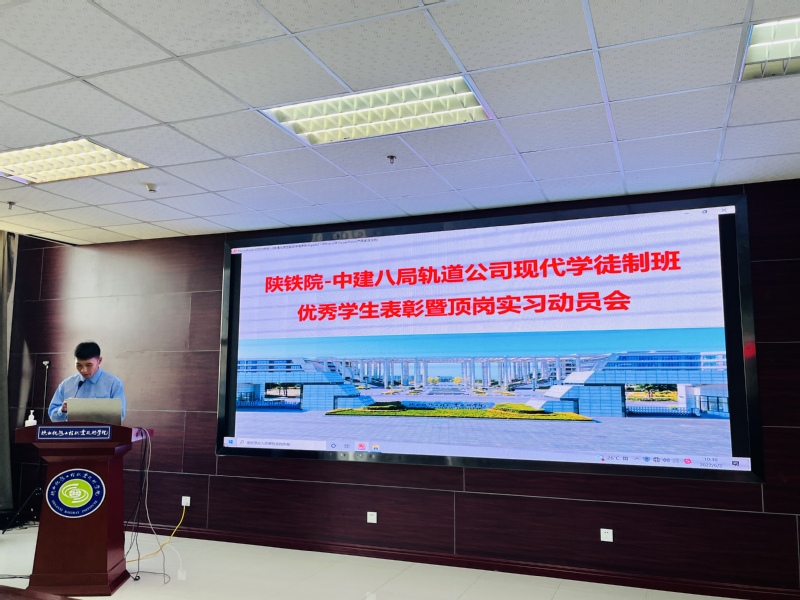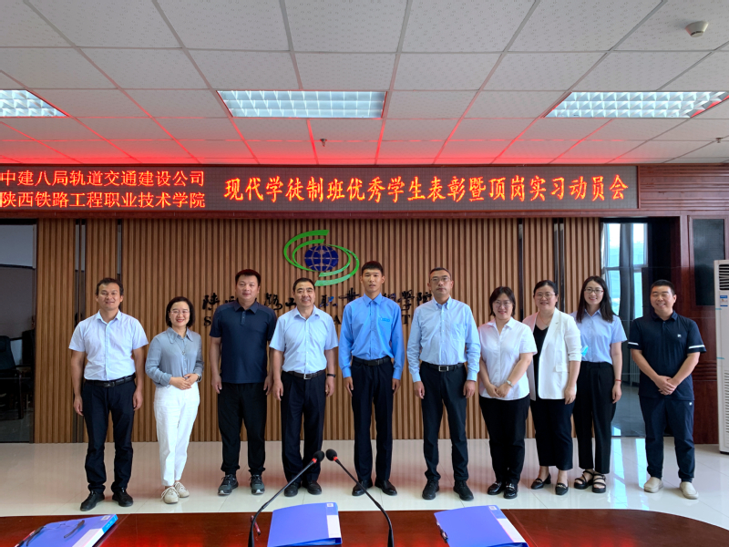 6月2日上午,陕铁院-中建八局轨道公司现代学徒制班优秀员工表彰暨顶岗实习动员会在高新校区北三楼会议室举行,公司副总经理马伟、人力资源部经理徐倩、副经理焦玉超、公司副书记李林军、就业处副处长任文、公司经理毛红梅、党总支书记任庆国、实践教学科科长高攀科、学徒班班主任孙喜文及学徒班全体学员参会,会议由毛经理主持。