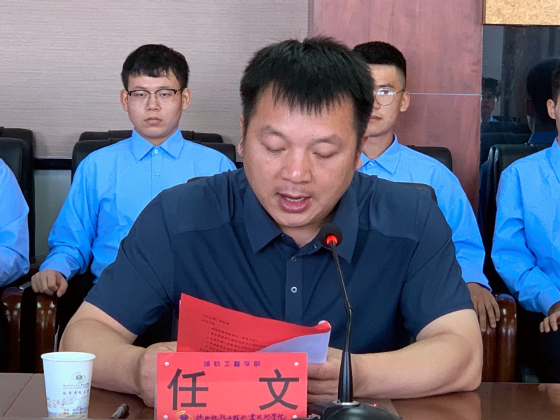 员工代表胡文涛发言表示,中建八局轨道公司的顶岗实习即将开始,同学们将从“陕铁院大家庭”走向“中建八局轨道公司大家庭”,零距离的感受中建八局轨道公司的企业文化和人才培养理念,在之后的顶岗实行过程中,将秉持陕铁院“吃苦奉献 拼搏争先”的精神,一步一脚印,积极工作,刻苦学习技能,力争做好企业岗位工作任务,学好技能,服务企业,报效祖国,为公司争光,为企业奉献。